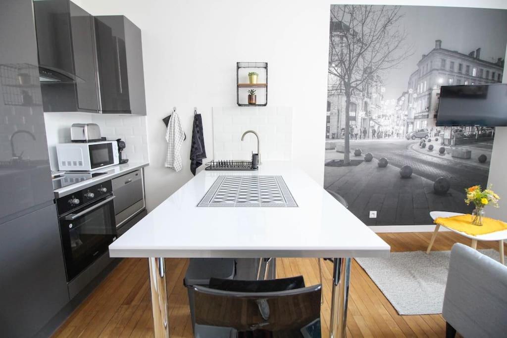Appartement 1 Chambre. The well-fitted kitchen has a refrigerator, a dishwasher, an oven and a microwave. The apartment has a flat-screen TV, a washing machine, a tea and coffee maker, as well as heating. The unit has 1 bed.