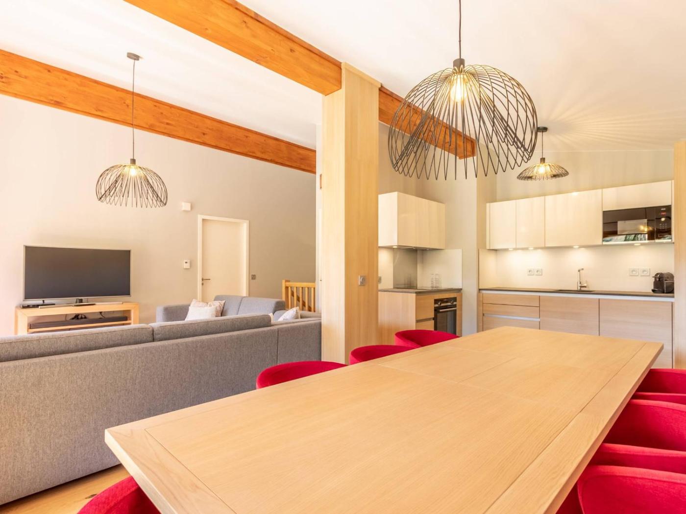 Appartement (8 Adultes). Guests will have a special experience as this apartment features a sauna. Featuring a private entrance, this spacious apartment also is comprised of 1 separate bedroom and 3 bathrooms with a bath and a shower. Meals can be prepared in the kitchen, which is fitted with a refrigerator, a dishwasher, kitchenware and an oven. Boasting a balcony with mountain views, this apartment also offers a washing machine and a TV.