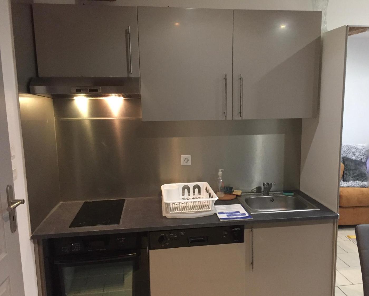 Studio avec Canapé-Lit. The well-fitted kitchen features a stovetop, a refrigerator, a dishwasher and kitchenware. The studio offers a private entrance, soundproof walls, as well as a private bathroom featuring a shower and a hairdryer. The unit offers 1 bed.