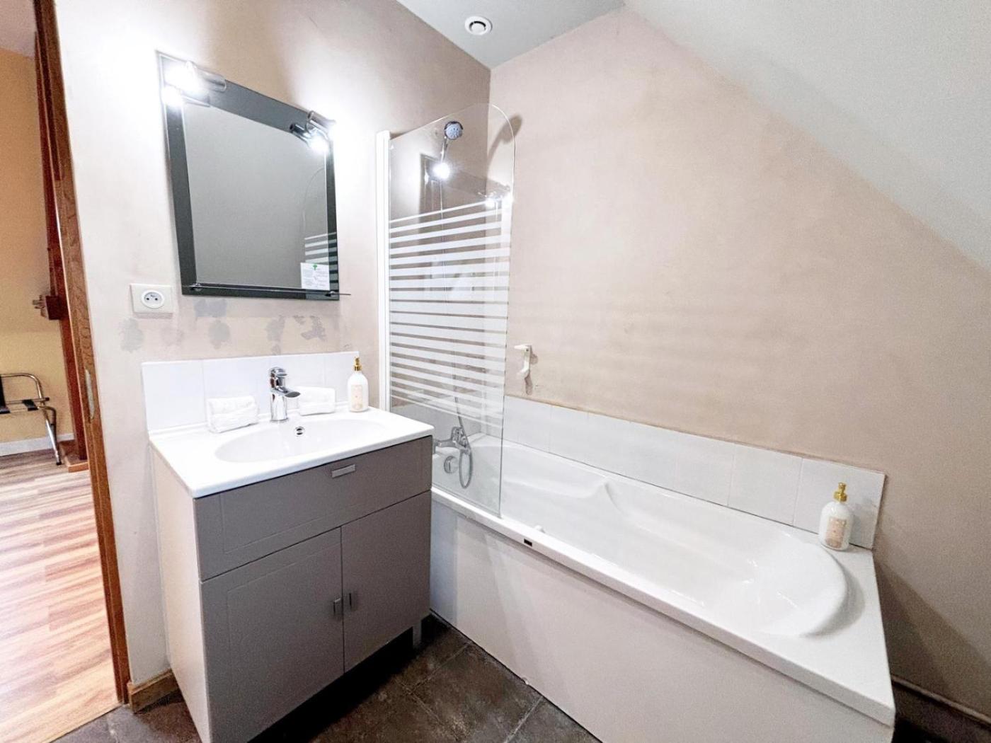 Appartement 2 Chambres. Boasting a private entrance, this apartment includes 1 living room, 2 separate bedrooms and 2 bathrooms with a bath and a hairdryer. The well-equipped kitchenette has a stovetop, a refrigerator, a dishwasher and kitchenware. The apartment offers a flat-screen TV, a tea and coffee maker, a seating area, a dining area as well as garden views. The unit has 3 beds.