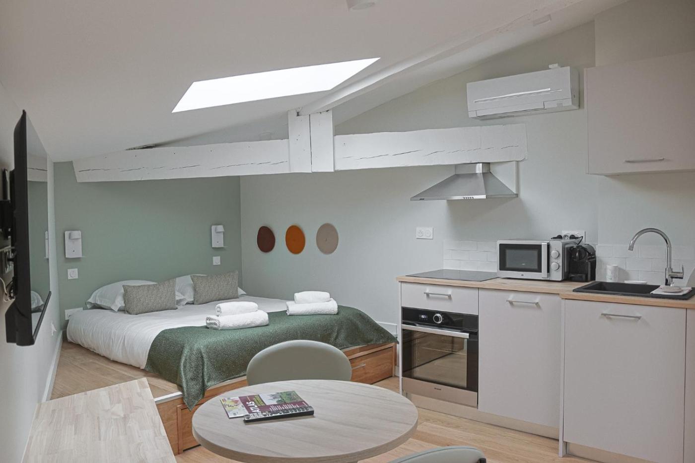 Studio Supérieur. The studio offers air conditioning, a tea and coffee maker, as well as a private bathroom boasting a shower and a hairdryer. In the well-fitted kitchen, guests will find a stovetop, a refrigerator, kitchenware and an oven. This studio has a dining area, heating, a flat-screen TV and city views. The unit has 1 bed.