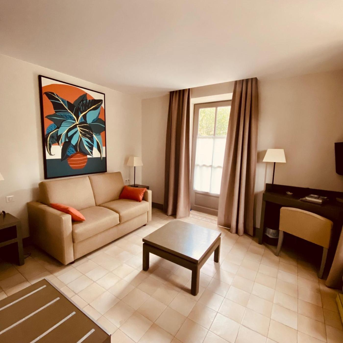 Suite Classique. This suite is comprised of 1 living room, 1 separate bedroom and 2 bathrooms with a bath and free toiletries. The air-conditioned suite offers a flat-screen TV with satellite channels, a minibar, a tea and coffee maker, a seating area as well as garden views. The unit offers 3 beds.