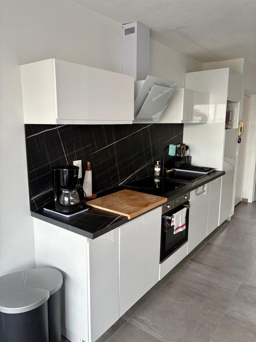 Cet appartement avec climatisation se compose de 1 chambre, dun salon, dune cuisine entièrement équipée avec un réfrigérateur et une machine à café, ainsi que de 1 salle de bains avec une douche et un sèche-cheveux. Des serviettes et du linge de lit sont mis à votre disposition.