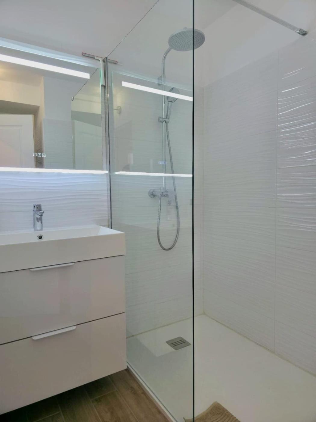 Appartement 3 Chambres. Boasting a private entrance, this air-conditioned apartment comes with 1 living room, 3 separate bedrooms and 2 bathrooms with a bath and a shower. Guests will find a stovetop, a refrigerator, a dishwasher and kitchenware in the well-fitted kitchen. The apartment also includes a barbecue. The spacious apartment features a washing machine, soundproof walls, a tea and coffee maker, a flat-screen TV with streaming services, as well as sea views. The unit has 3 beds.