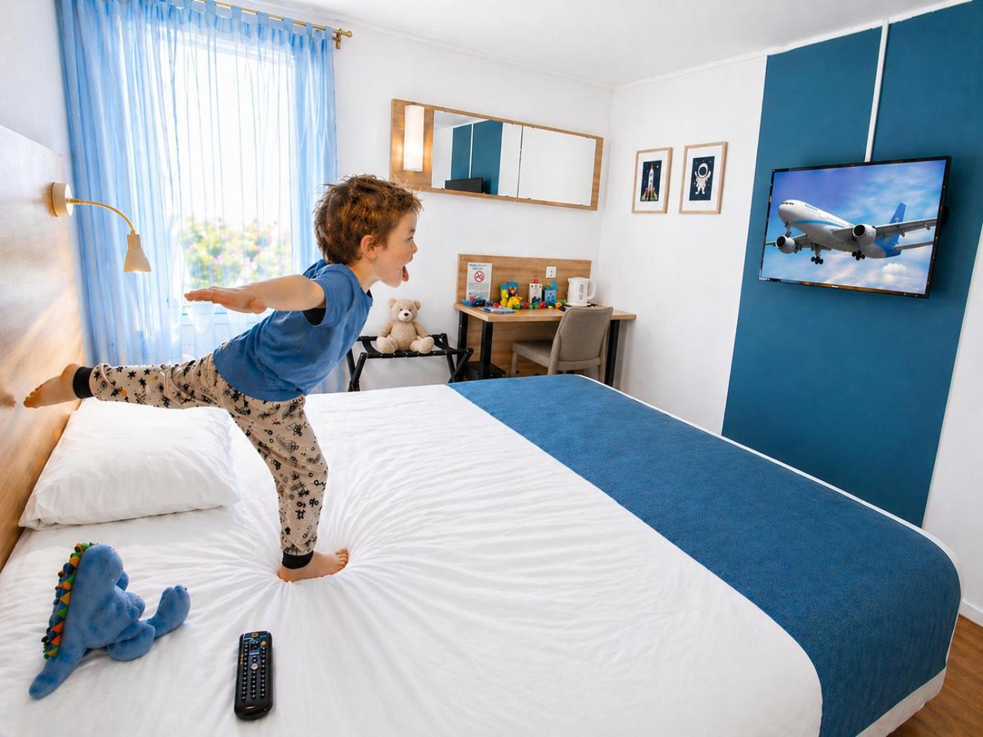 Chambre Familiale. This air-conditioned room includes a private bathroom, a flat-screen TV with satellite channels and tea and coffee making facilities. Please note that this room is not serviced by a lift. Connecting family room. ;