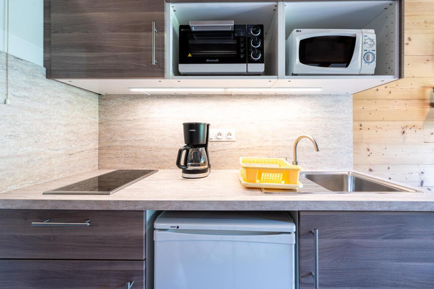 Studio - Vue sur Montagne. Guests can make meals in the kitchen that has kitchenware, an oven, a microwave and a toaster. The studio features a private entrance, a coffee machine, a balcony with mountain views as well as a private bathroom boasting a shower. The unit has 2 beds.