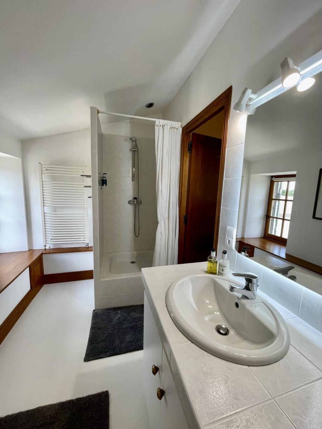 Vous trouverez une salle de bains privative avec une douche dans chaque logement, tout comme un sèche-cheveux, des chaussons et des peignoirs.