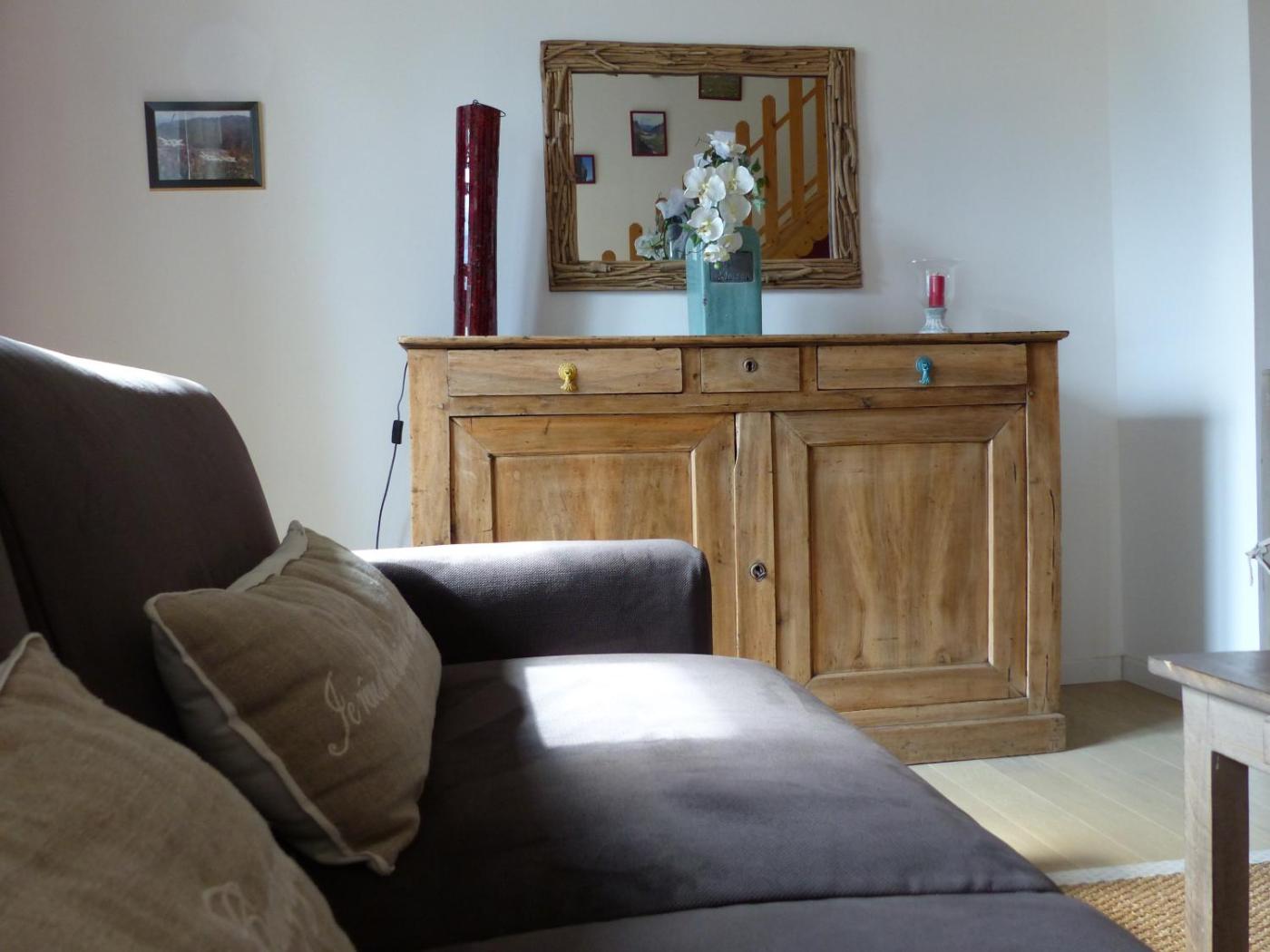 Chambre Familiale - Vue sur Montagne. The spacious family room provides a tea and coffee maker, a seating area, as well as a private bathroom featuring a walk-in shower and a hairdryer. The family room offers a wardrobe, a sofa, parquet floors, a flat-screen TV, as well as garden views. The unit offers 4 beds.