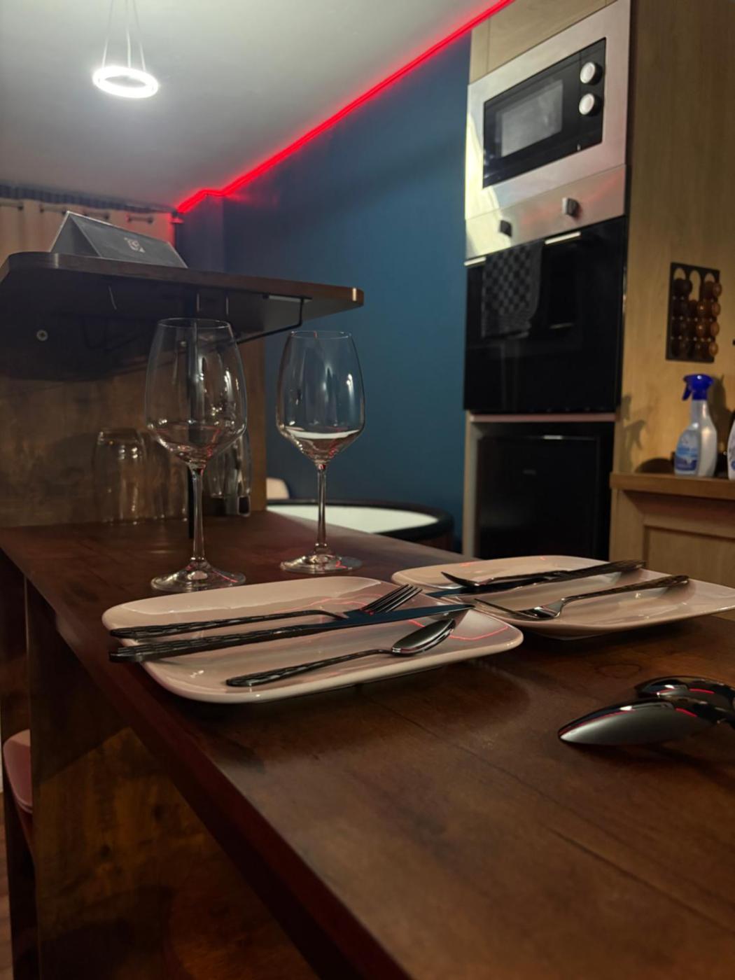 Appartement 1 Chambre. This apartment features a hot tub. This spacious apartment features 1 bedroom, a kitchen and 1 bathroom with a bath or a shower. Guests can make meals in the kitchen that has a stovetop, a refrigerator, an oven and a microwave. This apartment has a coffee machine, a dining area, flat-screen TV with streaming services, as well as winechampagne for guests. The unit has 1 bed.