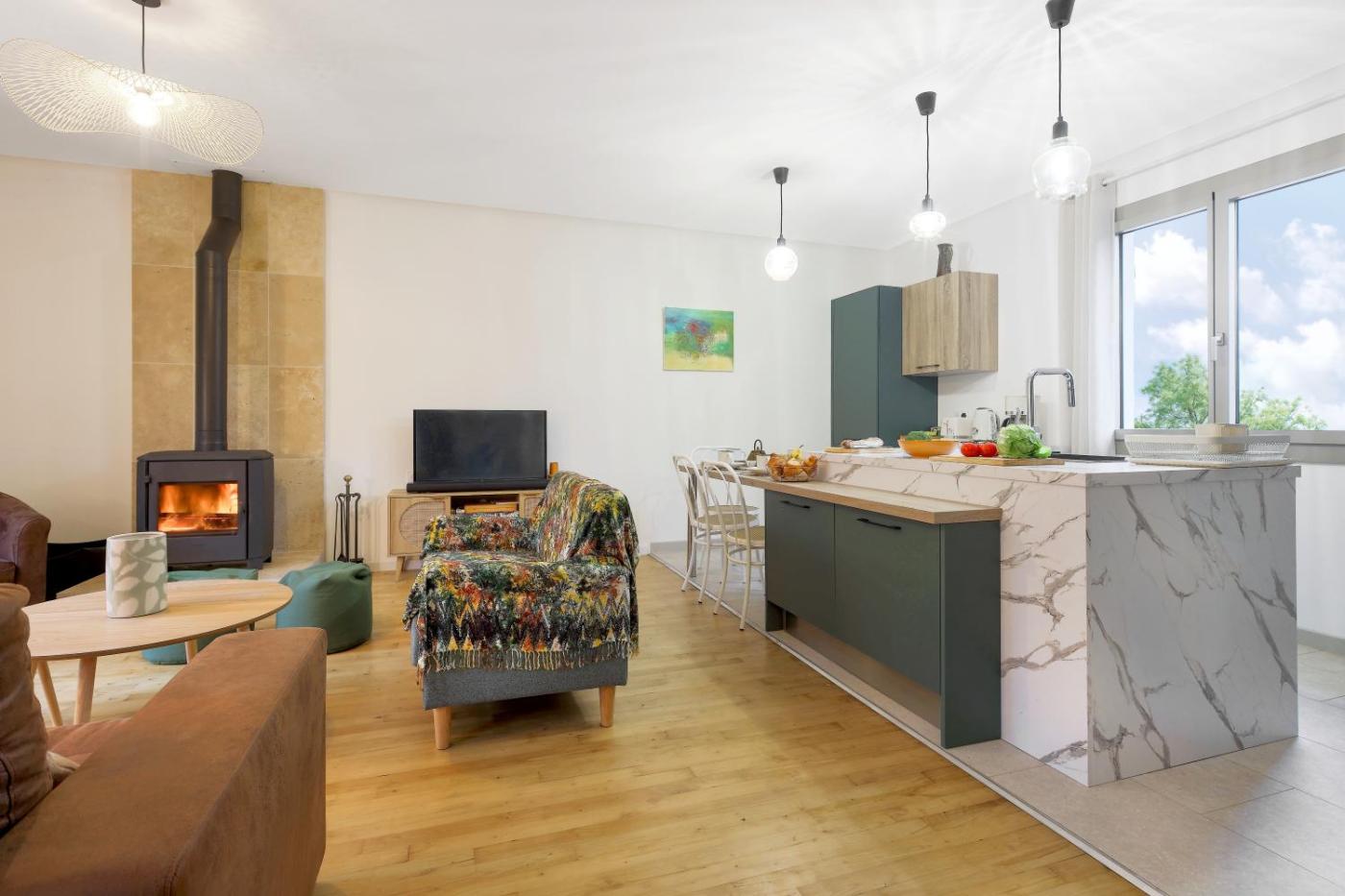 Maison 4 Chambres. The pool with a view and fireplace are the special features of this holiday home. Featuring a private entrance, this spacious holiday home also comprises 4 bedrooms, a seating area and 3 bathrooms with a walk-in shower and a bath. Guests will find a stovetop, a refrigerator, a dishwasher and an oven in the kitchen. The holiday home also provides guests with a barbecue. Boasting a terrace with garden views, this holiday home also provides a washing machine and a flat-screen TV with satellite channels. The unit offers 4 beds.