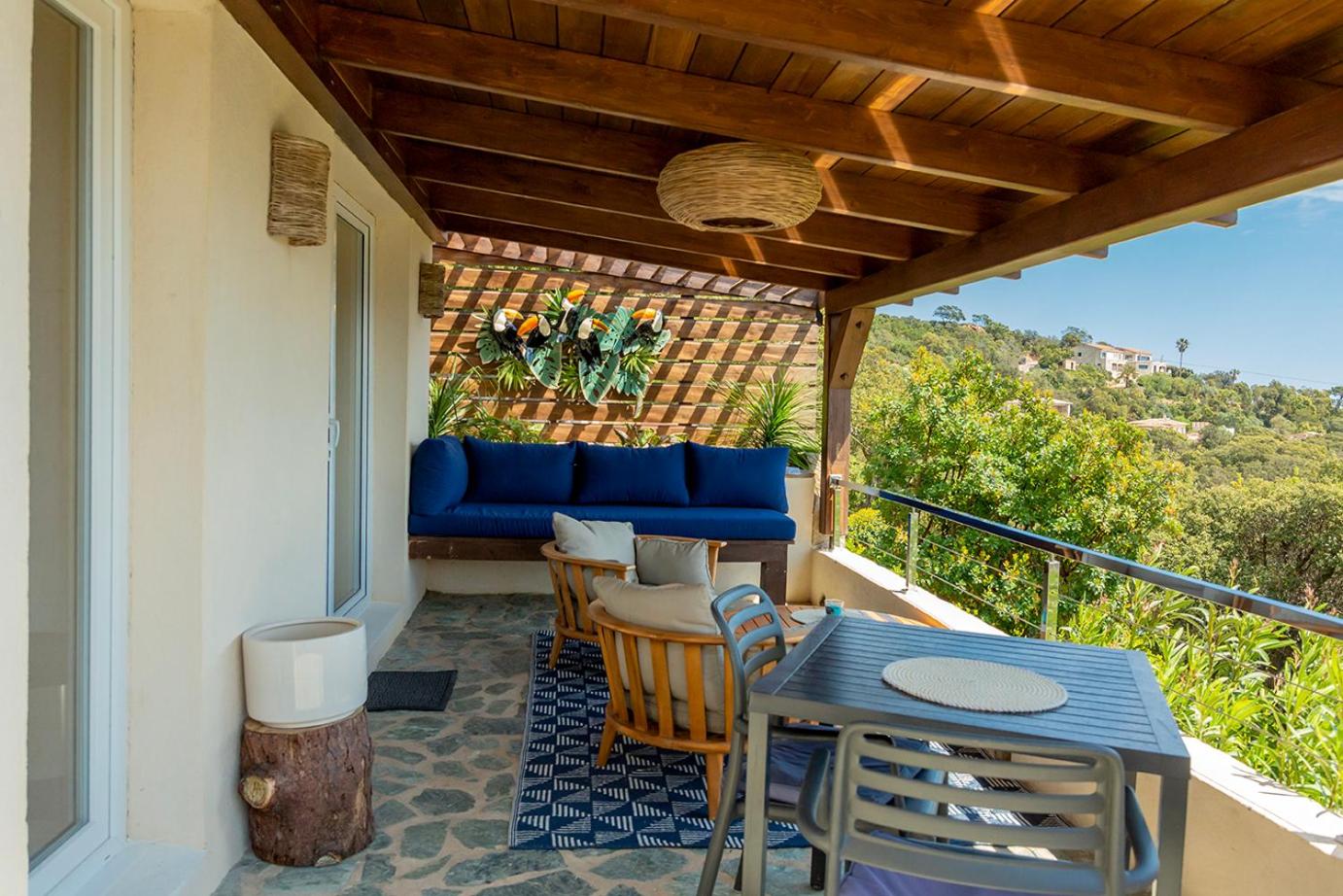 Bonifacio est à 35 km et Zonza, un village à flanc de colline, à 40 km. Laéroport de Figari est à 45 minutes de route. Le stationnement sur place est gratuit.