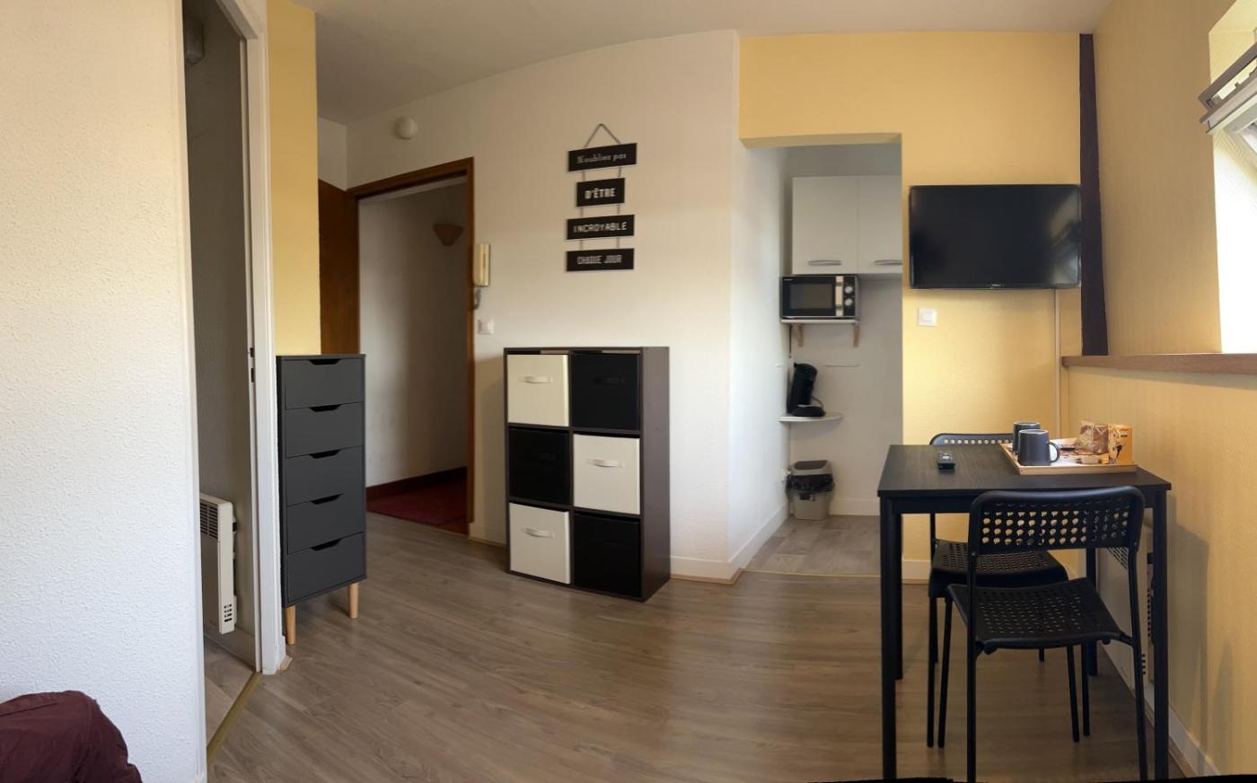 La cuisine est pourvue d’un réfrigérateur, d’un micro-ondes et d’une plaque de cuisson. Elle est également dotée d’une machine à café.