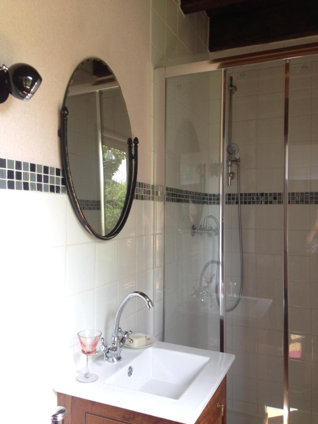 Chambre Double. The double room features executive lounge access, a seating area, a terrace with garden views as well as a private bathroom boasting a shower. The unit has 1 bed.