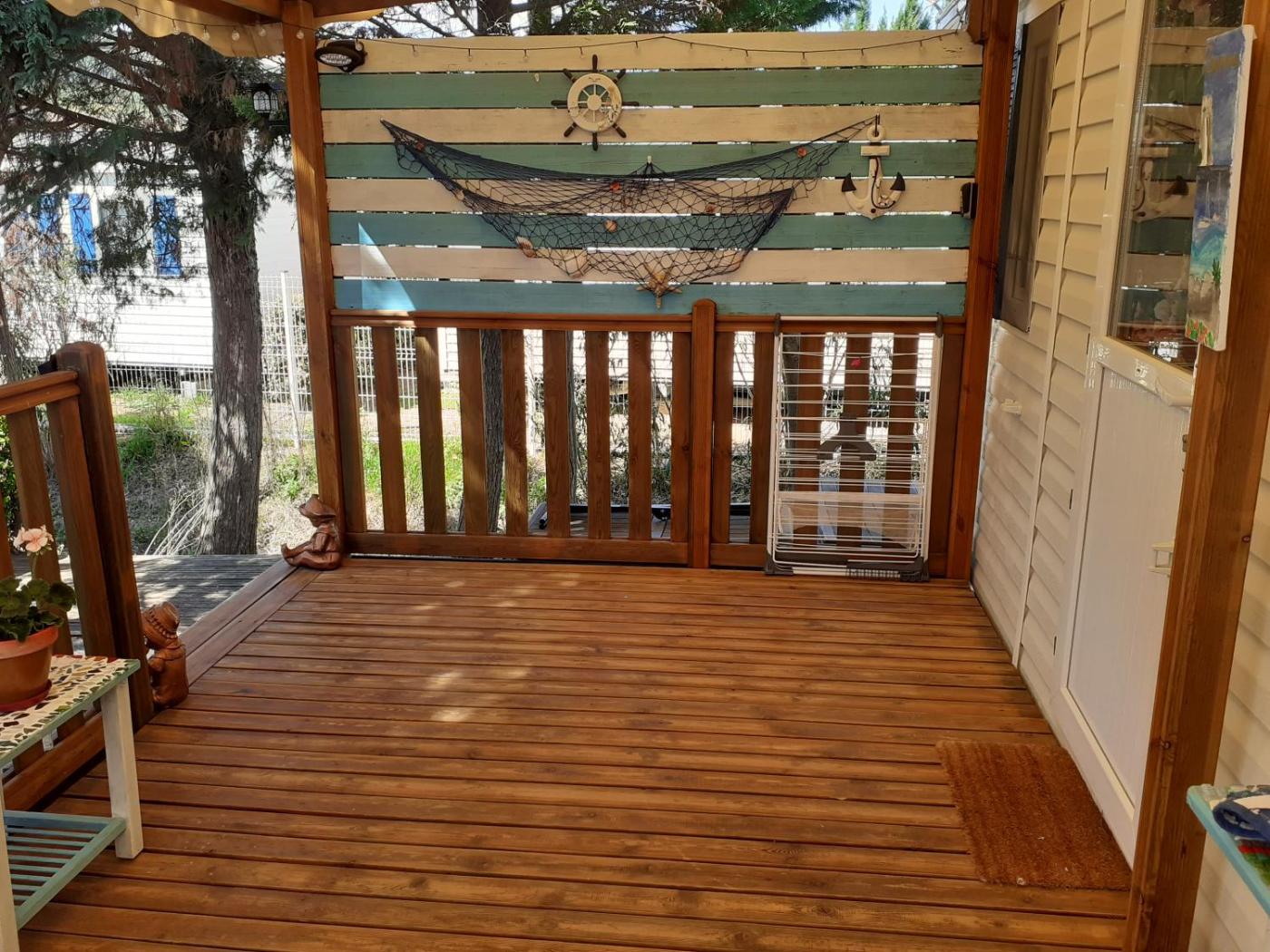 Mobile Home. Featuring a private entrance, this air-conditioned mobile home is comprised of 1 living room, 3 separate bedrooms and 1 bathroom with a shower and a hairdryer. The well-fitted kitchen features a stovetop, a refrigerator, kitchenware and an oven. Boasting a terrace, this mobile home also offers a washing machine, a tea and coffee maker and a flat-screen TV. The unit offers 5 beds.